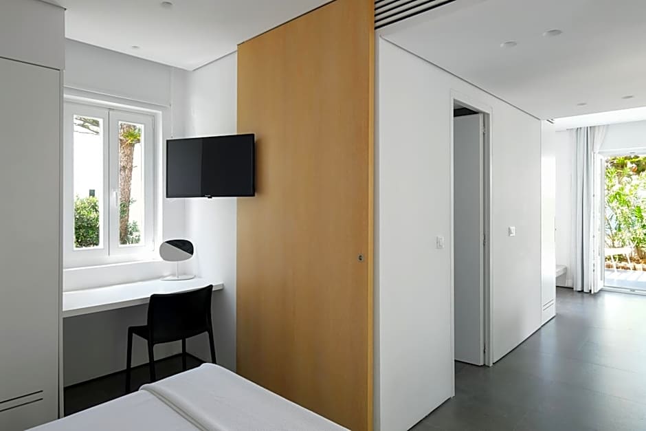 Featuring a bedroom with a double bed and a living room with a built-in sofa, a bathroom with a shower, a terrace on the ground floor with a relaxing private hydro-massage tub and views of the lush gardens. The room has air conditioning and heating, satellite TV, hairdryer, telephone, mini-bar, pool towels, slippers, toiletries and free wireless internet access.